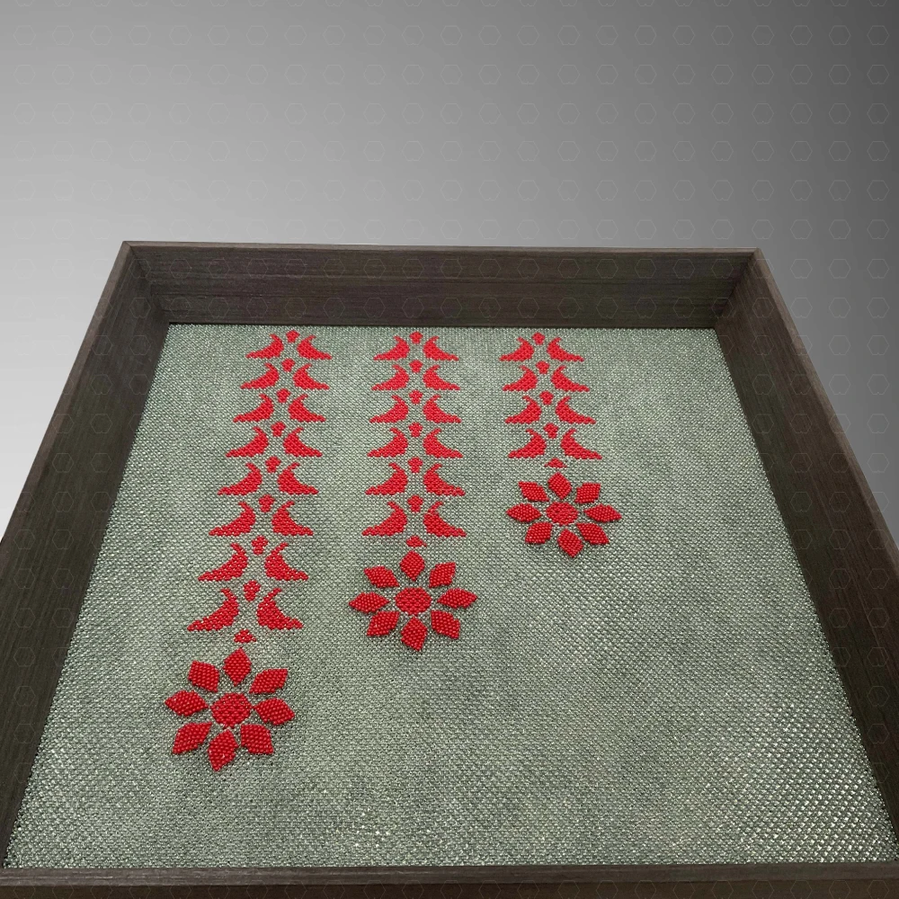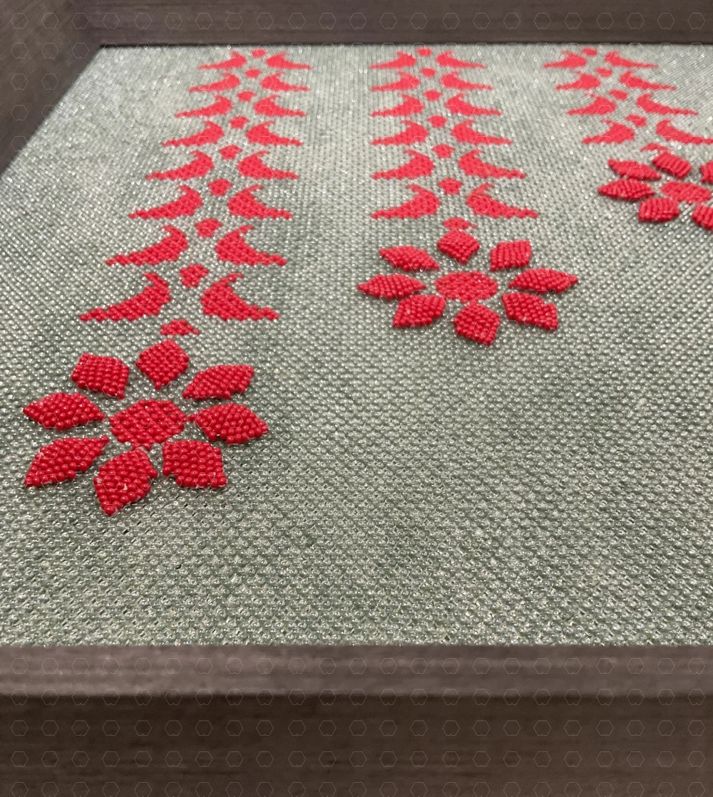 - Composition: Mirror layer beneath beadwork