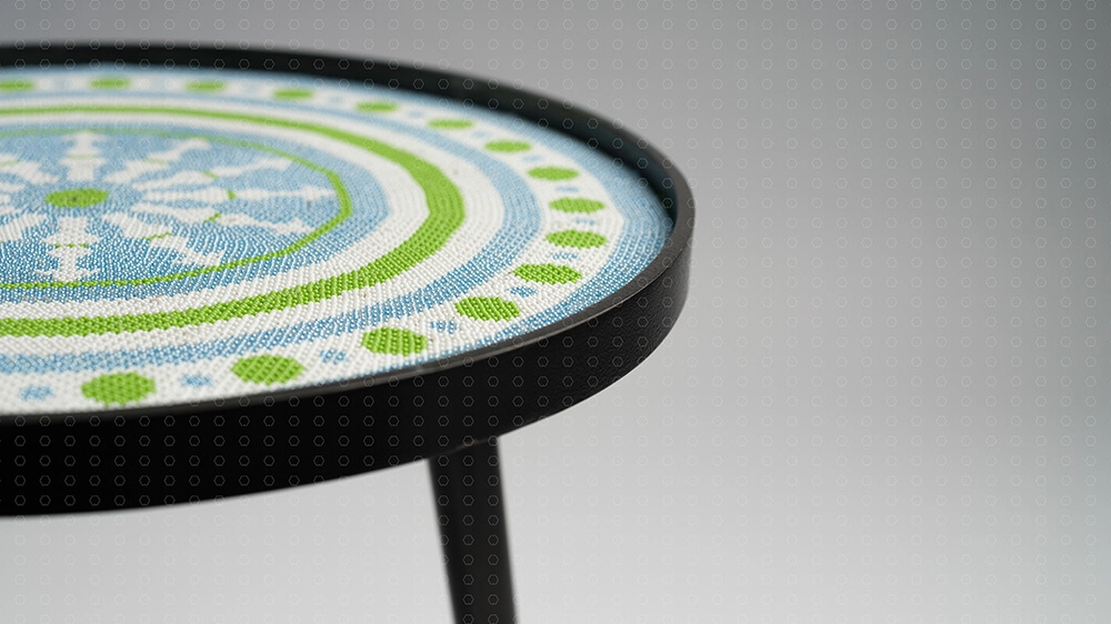 Inspired by the ancient concept of Kavach (protective shield), the Āvaraṇa Table is a symbol of empowerment, radiance, and anchoring strength. Its intricate beaded design not only elevates the visual language of a space but also resonates with the essence of protection and positive energy.