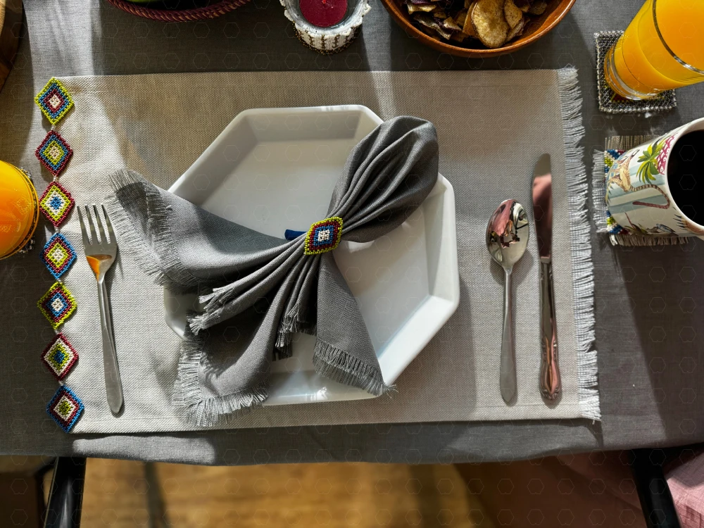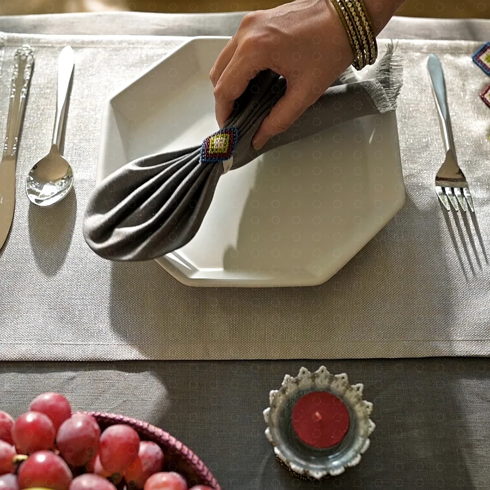 Impress your guests with the Paṭṭikā-3 linen napkin, where tradition, luxury, and quality come together in a beautifully refined form. Crafted from pure linen with meticulously finished edges,It makes a perfect pair with the Auraband Bandhah. This piece not only complements the Sitiya Sangraha -3 but also ensures your table always looks its best, transforming every meal into an exquisite dining experience.
